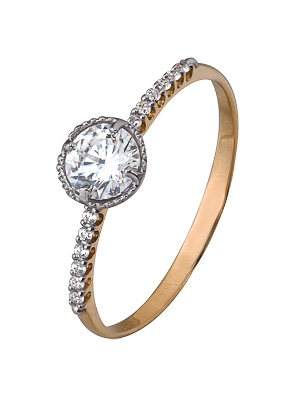 14 Фианитов Sw. 0,120Ct, 1 Фианит Sw. 0,855Ct