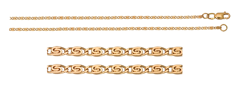 Есть плетения, с которыми нужно обращаться весьма аккуратно, это так называемые «полужесткие» плетения: шнурки, струны и т. д. Эти цепочки очень красивы, нарядны, но требуют аккуратности в носке, их обязательно нужно снимать на ночь, т. к. они подверженны заломам, которые потом исправить нельзя.