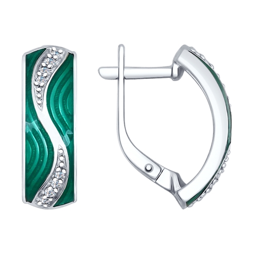 Серьги с иск. изумрудом, корундом и фианитами пр-ль SOKOLOV