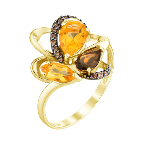 1 Раухтопаз Гр. 6,00*4,00 0,390Ct, 1 Цитрин Гр. 7,00*5,00 0,650Ct, 1 Цитрин Маркиз 7,00*3,50 0,350Ct, 16 Фианитов Кр 1,00 0,128Ct