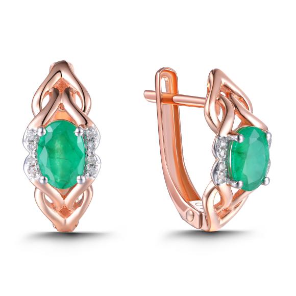 Серьги с бриллиантом и изумрудом