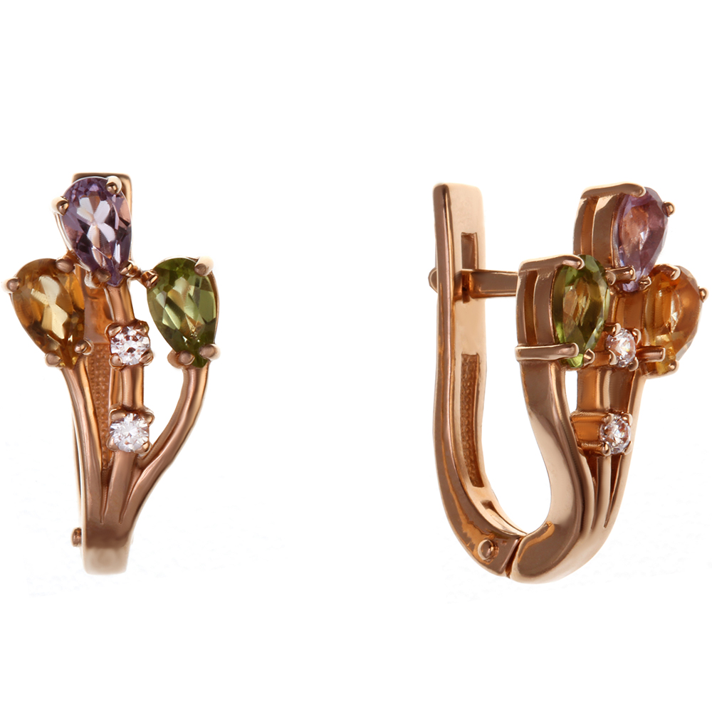 2 Цитрина Гр. 5,00*3,00, 2 Аметиста Груша 5,00*3,00, 2 Хризолита Гр. 5,00*3,00, 4 Фианита Кр 1,750Ct