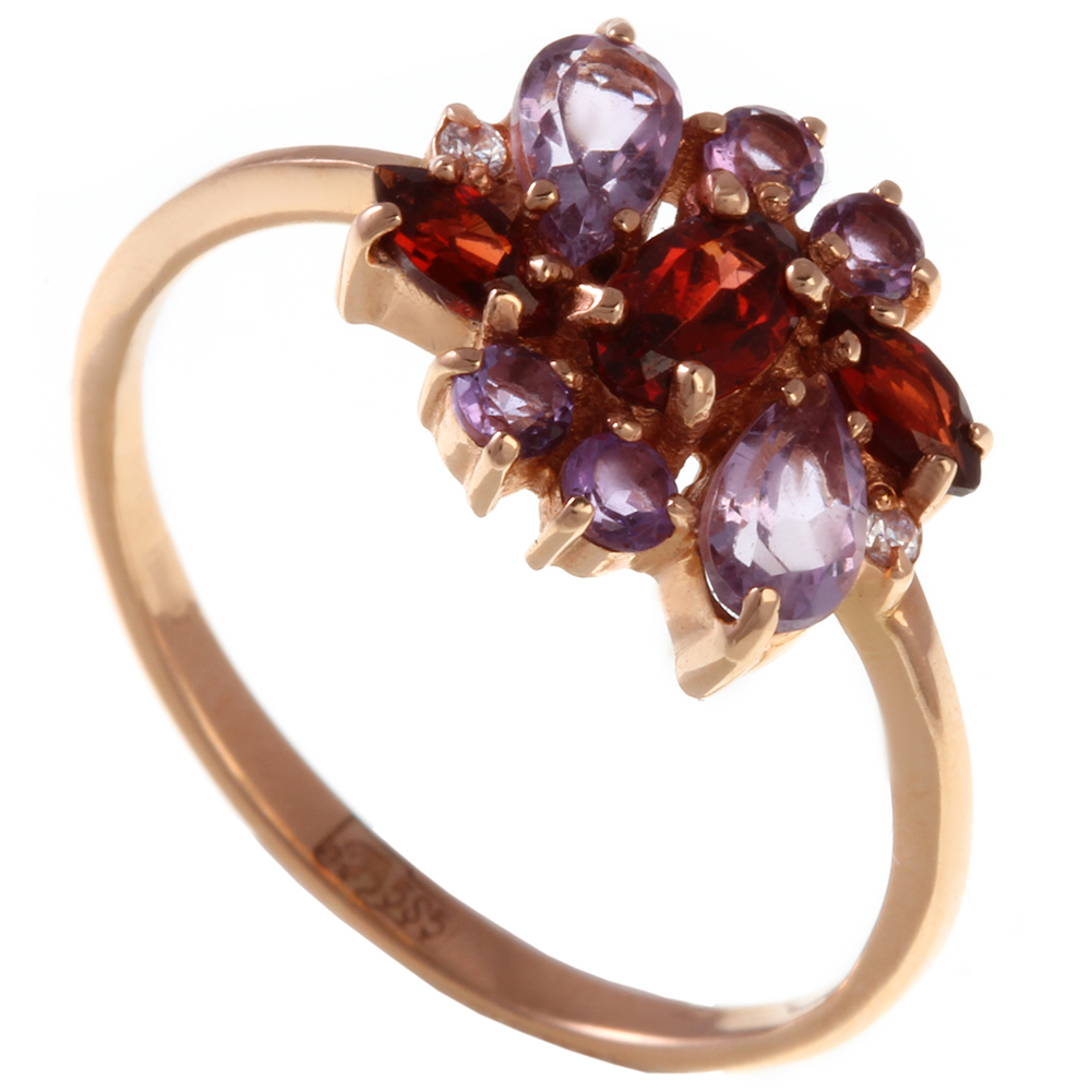 2 Аметиста Груша 5,00*3,00 0,381Ct, 4 Аметиста Кр 2,25 0,165Ct, 2 Фианита Кр 1,250Ct, 2 Граната Овал 4,00*2,00 0,223Ct, 1 Гранат Овал 5,00*3,00 0,234Ct