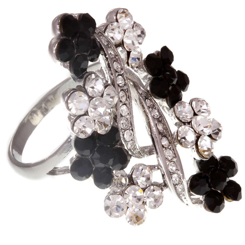 Кольцо серебристое стразы