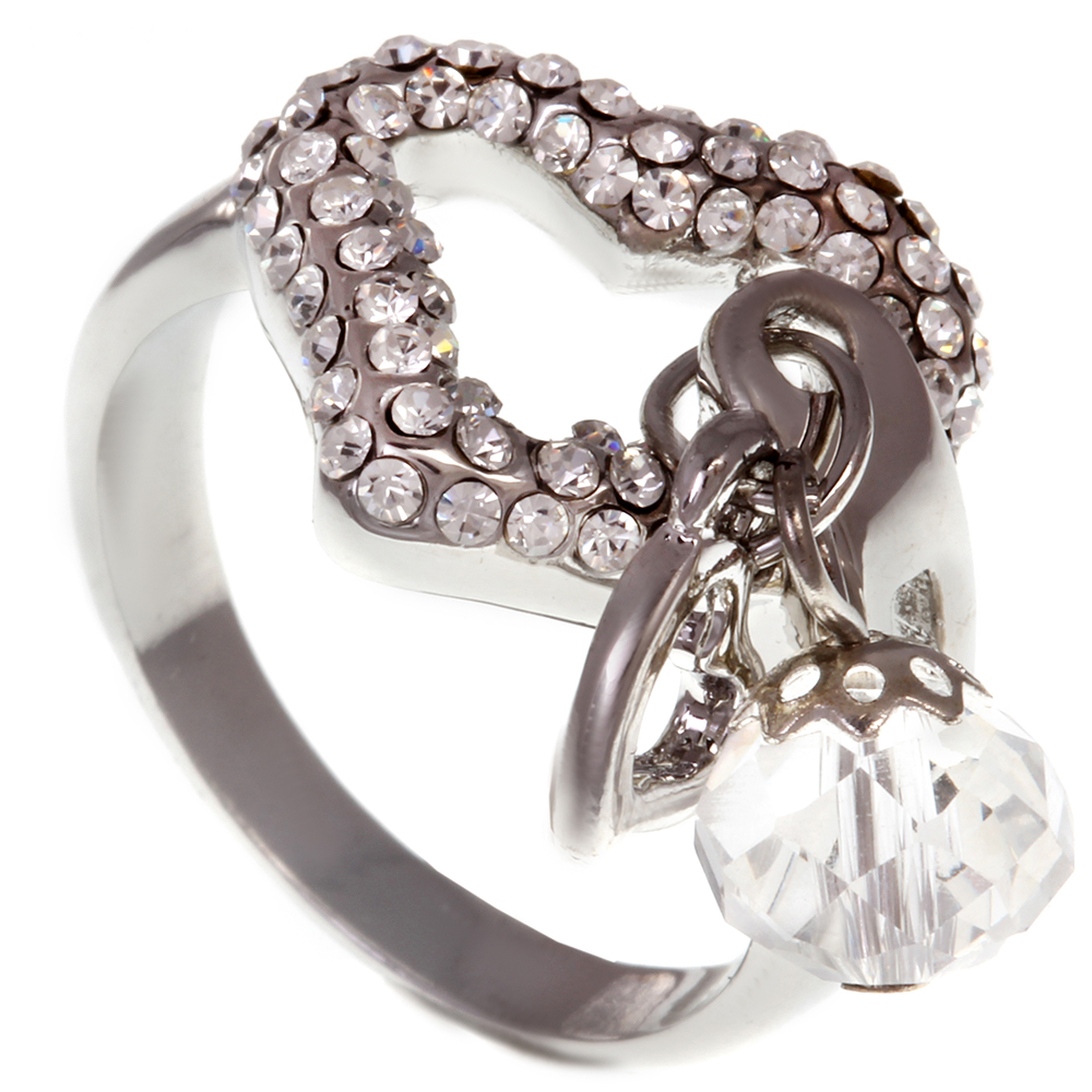 Кольцо серебристое стразы